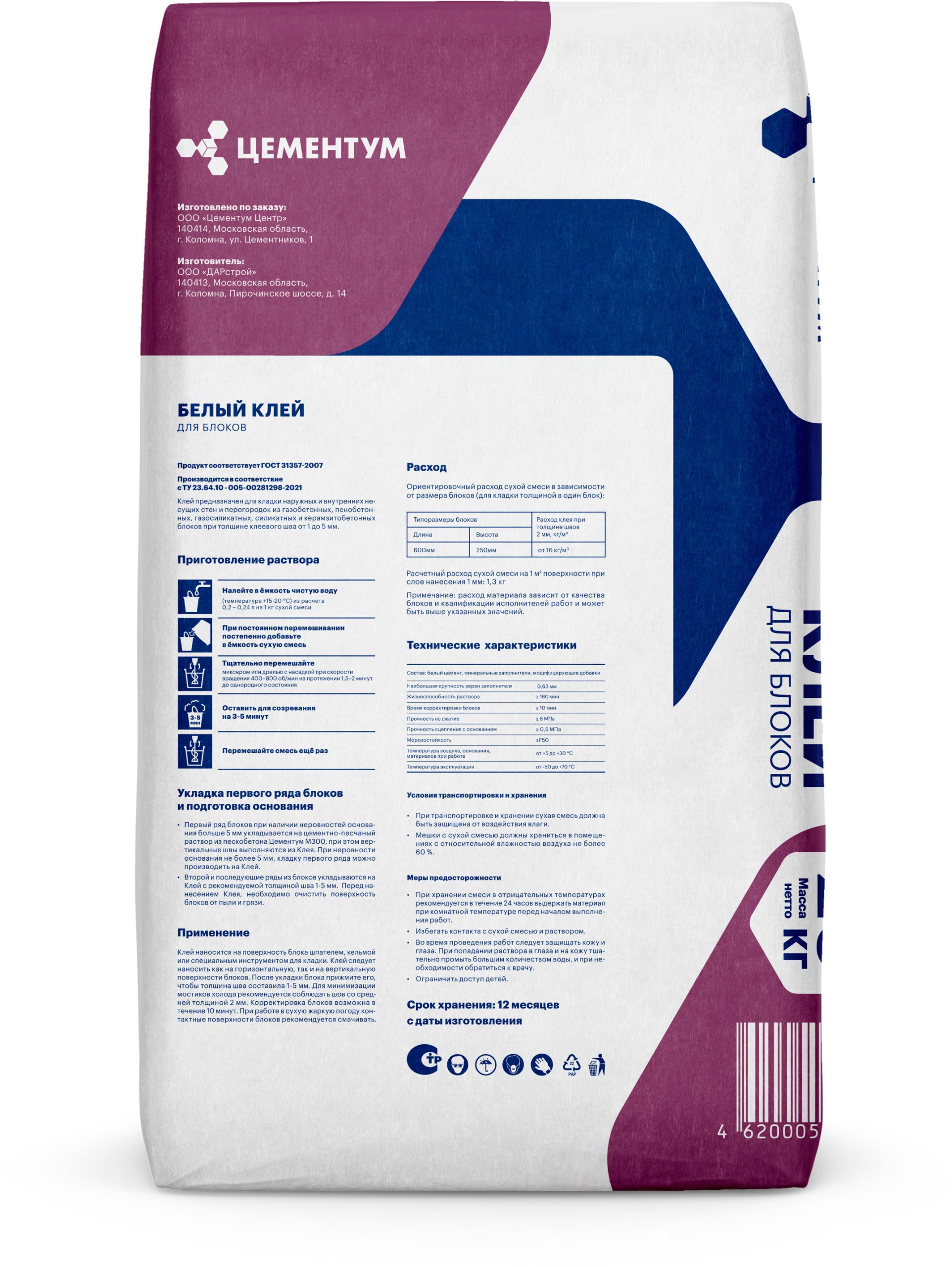 Клей со склада в Москве. Доставка по Москве и Московской области в день заказа. Белый клей для блоков ЦЕМЕНТУМ крупным и мелким оптом по ценам производителя.